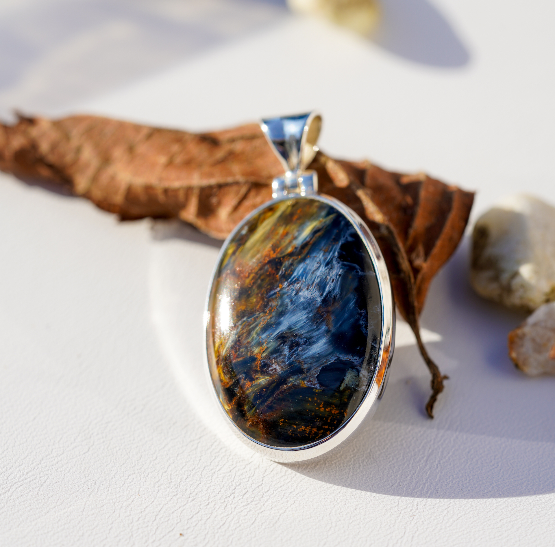 [731][마지막한점] 폭풍석 피터사이트 천연석 925 실버 타원형 펜던트_2.2x4.2cm