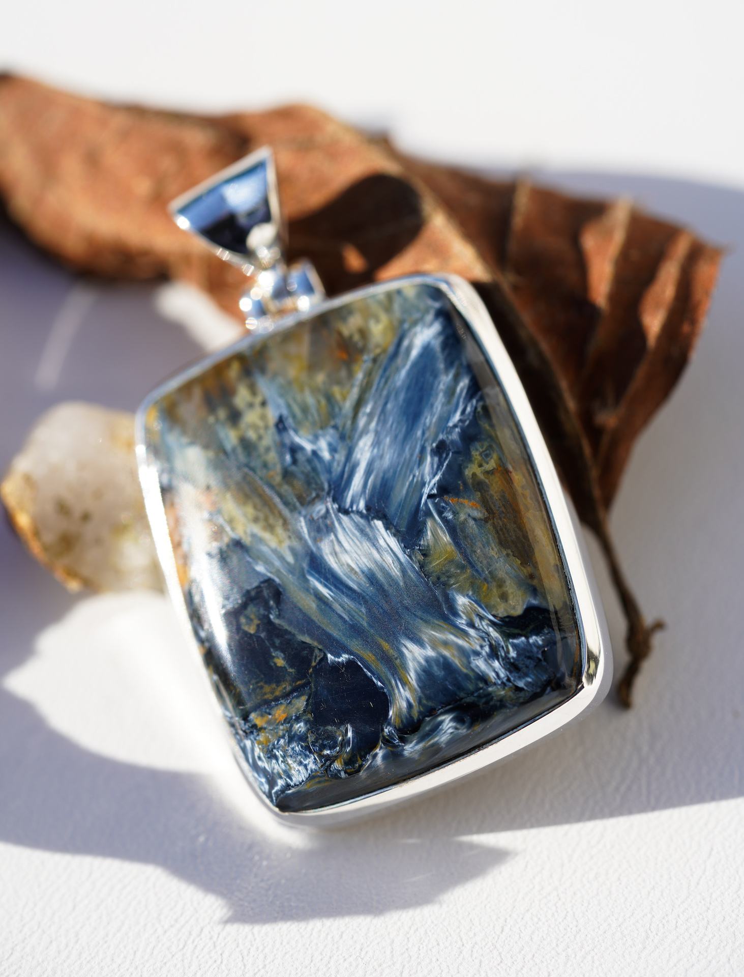[735][마지막한점] 폭풍석 피터사이트 천연석 925 실버 타원형 펜던트_2.8x4.2cm