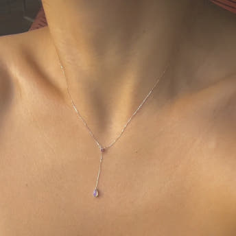 [D-MADE by Rokuzan] 0.02 ct 천연 최상급 루비와 천연 호주 블루오팔 물방울 목걸이 10K white gold 40cm 37cm 영고리