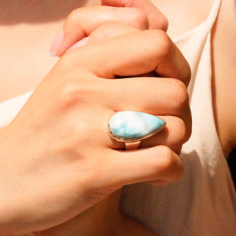 [559][마지막한점] 바다를 머금은 라리마 천연석 물방울 925 실버 반지 1.6 x 2.9cm