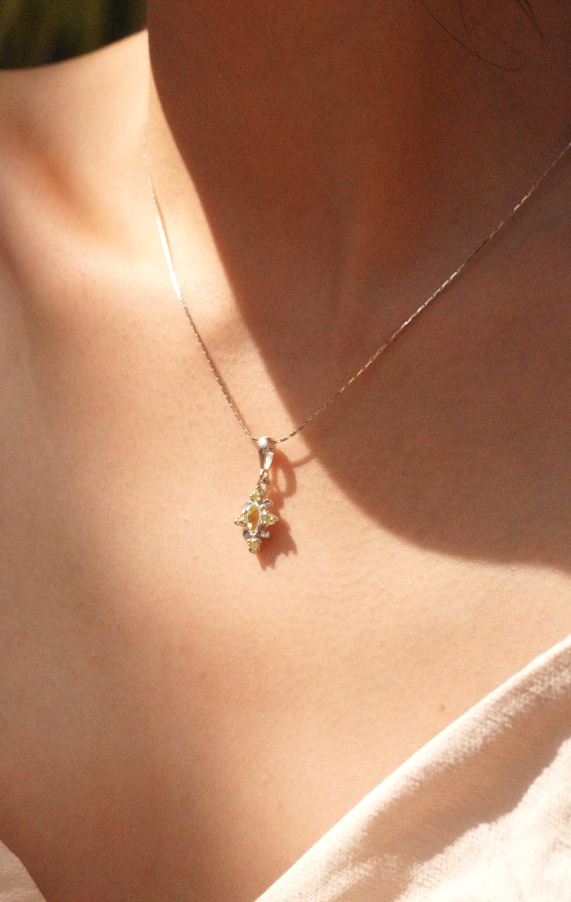 [130N][디자이너피스] 매력적인 쪼꼬미 페리도트 원석에 유니크한 실버 원형 디테일 925 실버 41cm 목걸이