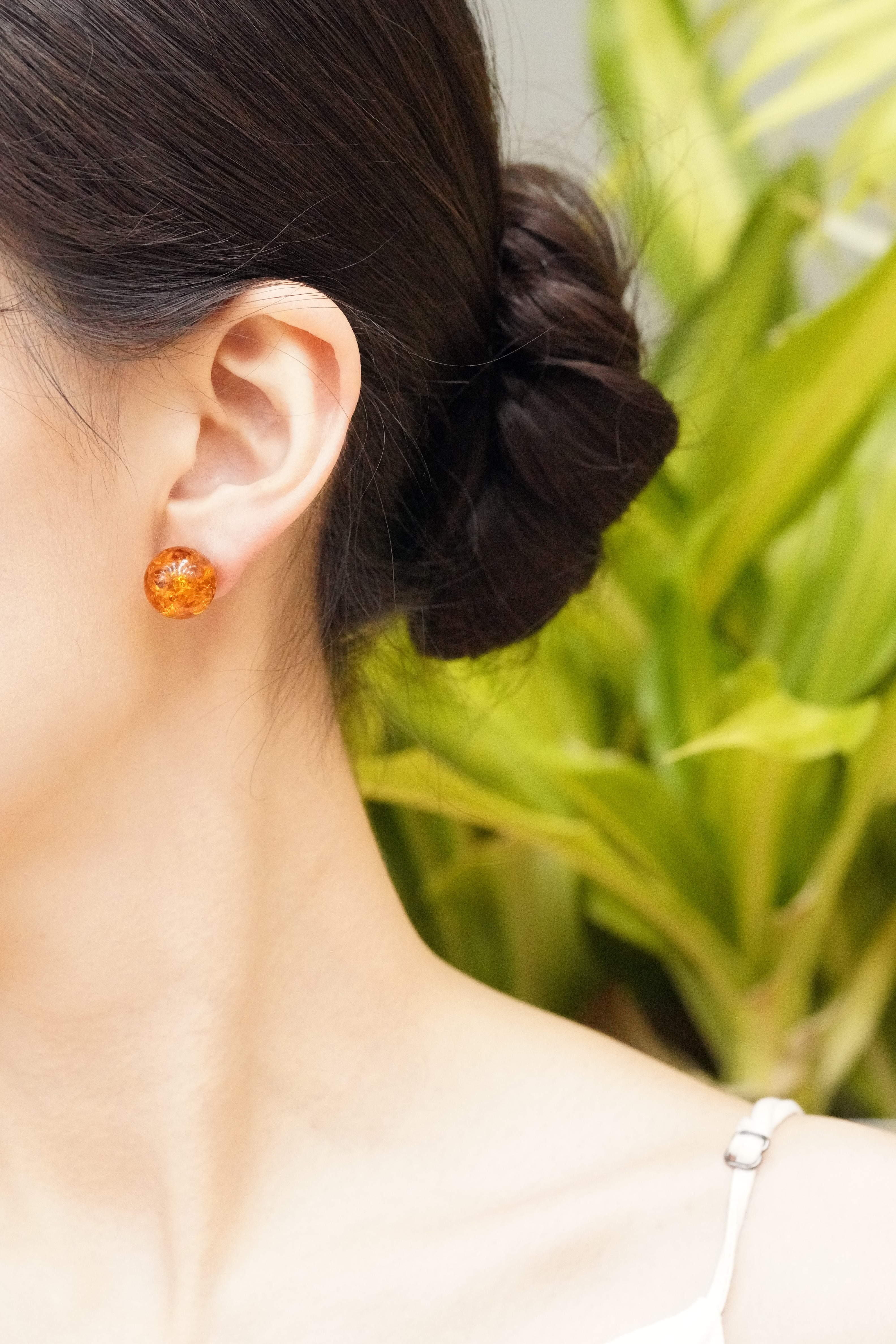 [A93][Amber 호박] 14mm 금파 실버 귀걸이 단단하게 잡아주는 화이트 도금 클러치 포함