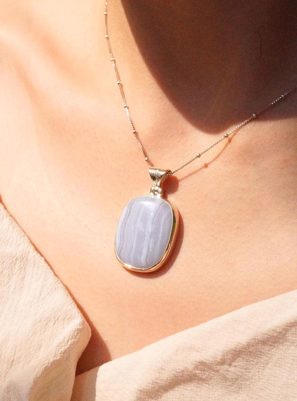 [513][원석포인트][마지막 한점]천연 블루레이스 아게이트 원석 925 실버 사각 스퀘어 펜던트 2.31 x 2.6cm