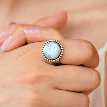 [561][마지막한점] 바다를 머금은 라리마 천연석 원형 925 실버 반지 1.5 x 1.5cm