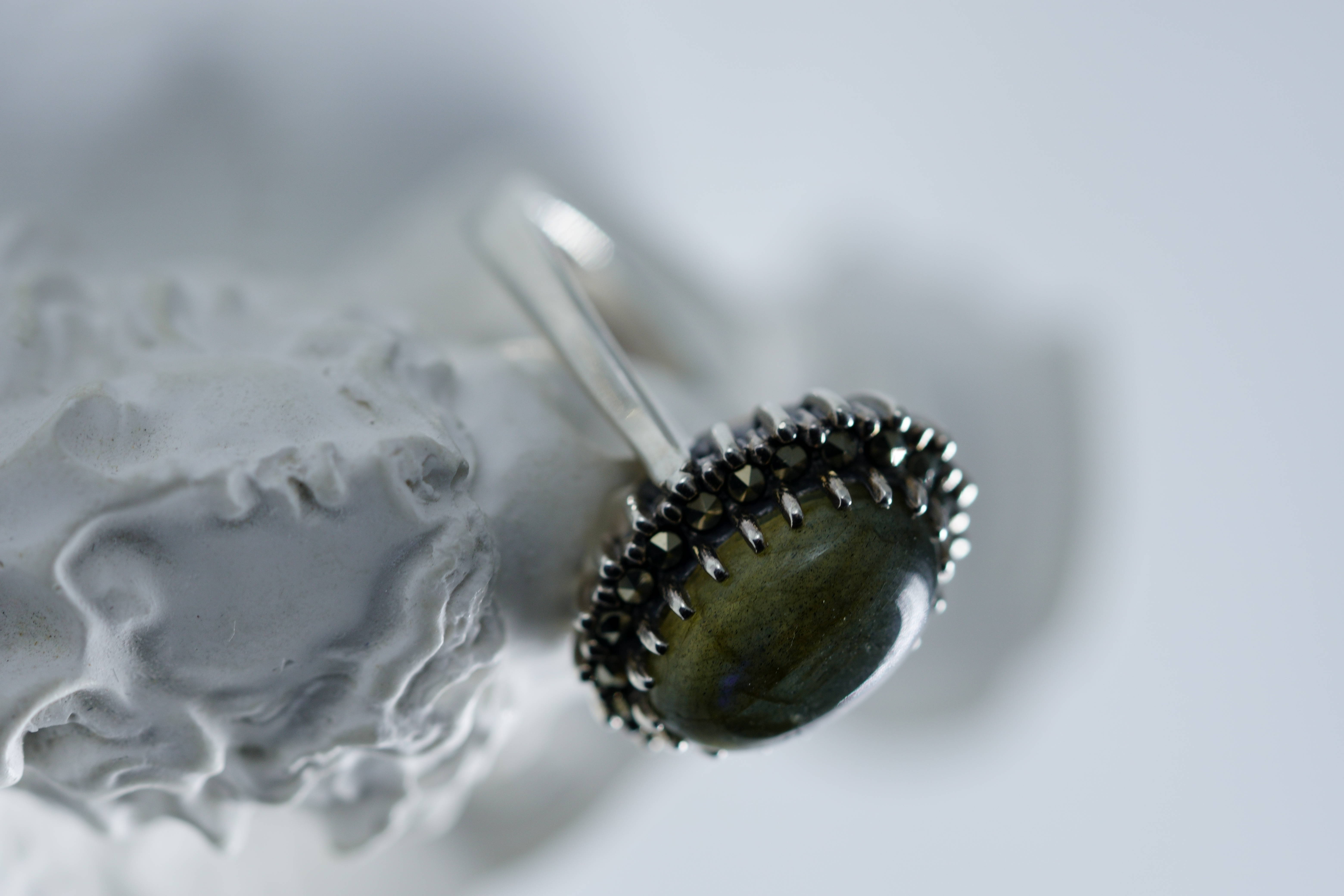 [26A40] 래브라도라이트 마카사이트 실버 반지