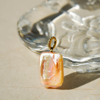 [307][마지막한점] 18K 옐로우골드 천연다이아몬드 색감이 매력적인 상급 코랄 사각 담수진주 펜던트 (14.5x27mm)