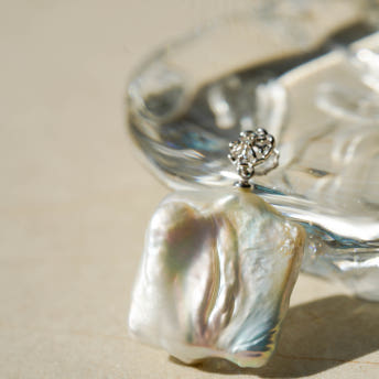 [306][마지막한점] 18K 화이트골드 천연다이아몬드 색감이 매력적인 상급 사각 담수진주 펜던트 (19.8x27.5mm)