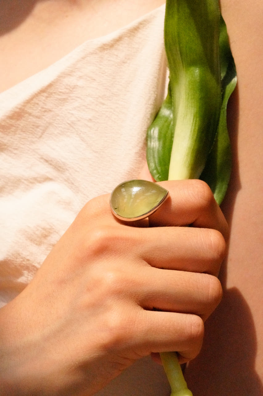 [539][마지막한점] 상큼한 청포도를 닮은 원석 프레나이트 물방울 천연석 925 실버 반지 1.98 x 2.5cm