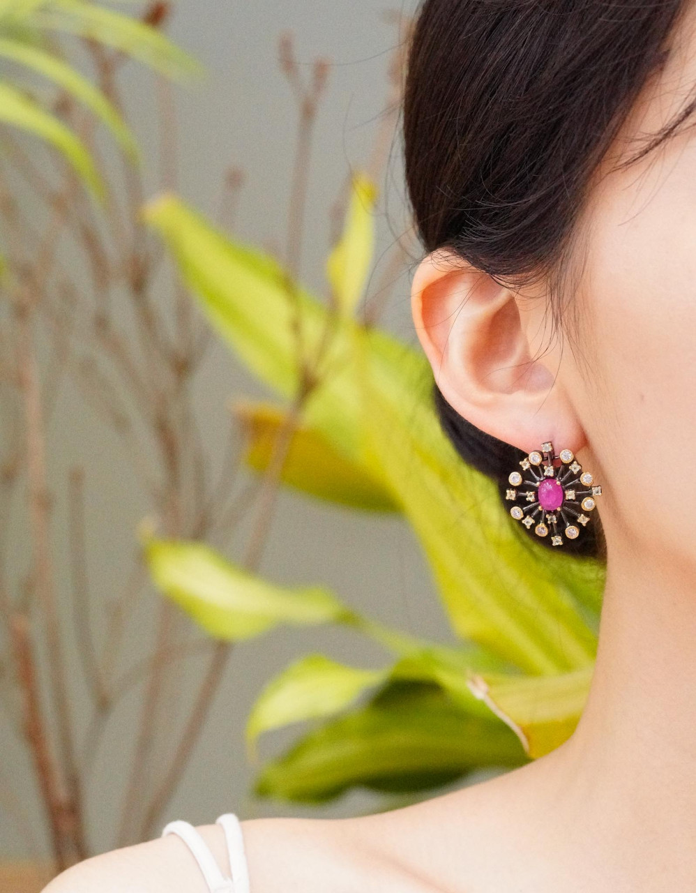 [456][마지막한점] 착용하면 더 포인트되는 루비 투톤 925 실버 귀걸이
