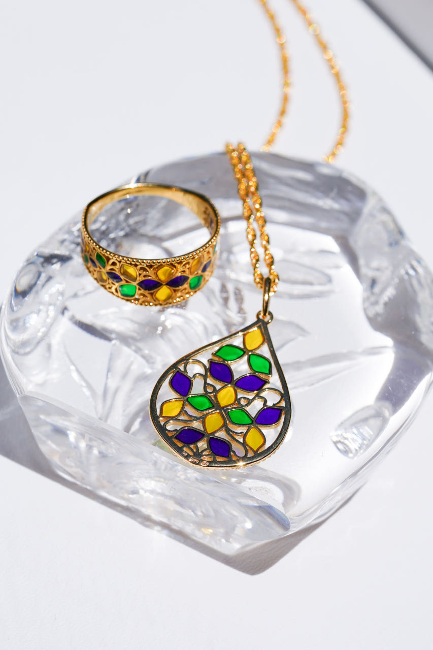 [R4][Rokuzan][마지막한점] 로쿠잔 22K 골드 도금 실버 애나멜 플라워 모티브 목걸이 (70cm 브라스소재 목걸이 포함)_20x33mm