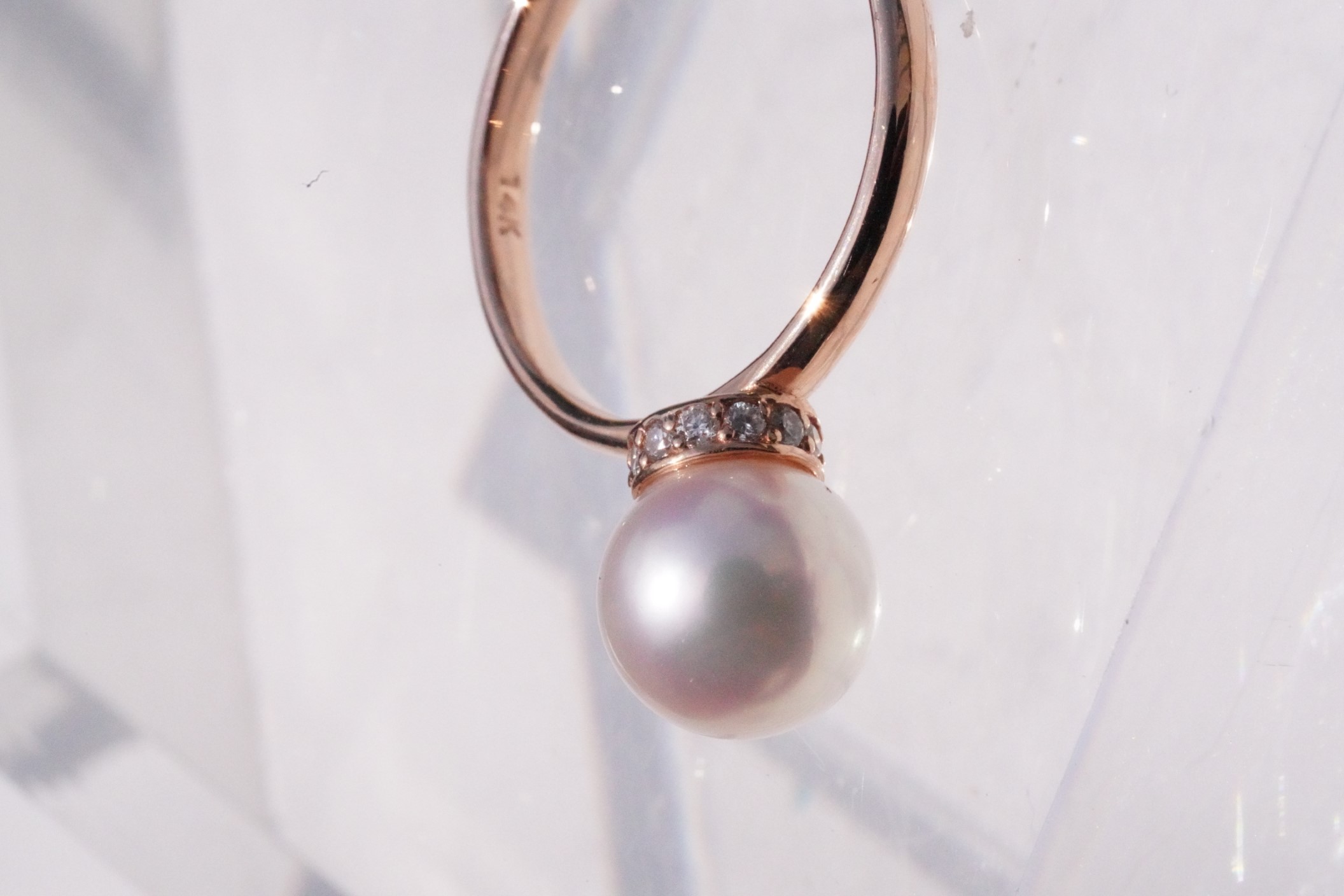 [302][2차 입고 얼리버드][D made] 최상급 광택 일본 직수입 아코야진주 8.5mm 천연 다이아몬드 14K 로즈골드 반지