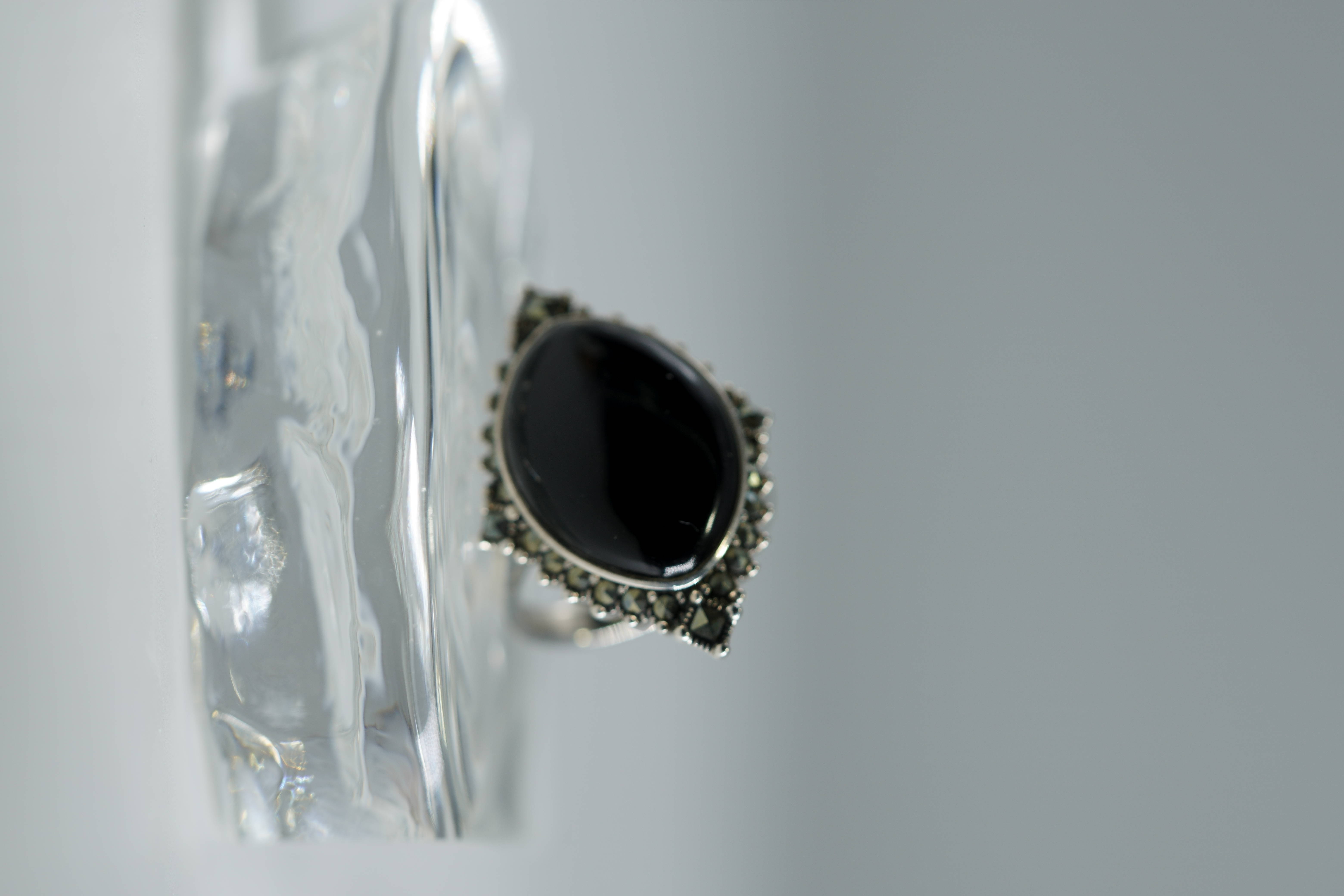 [26A27] 마퀴즈 쉐입의 블랙 오닉스 실버 반지