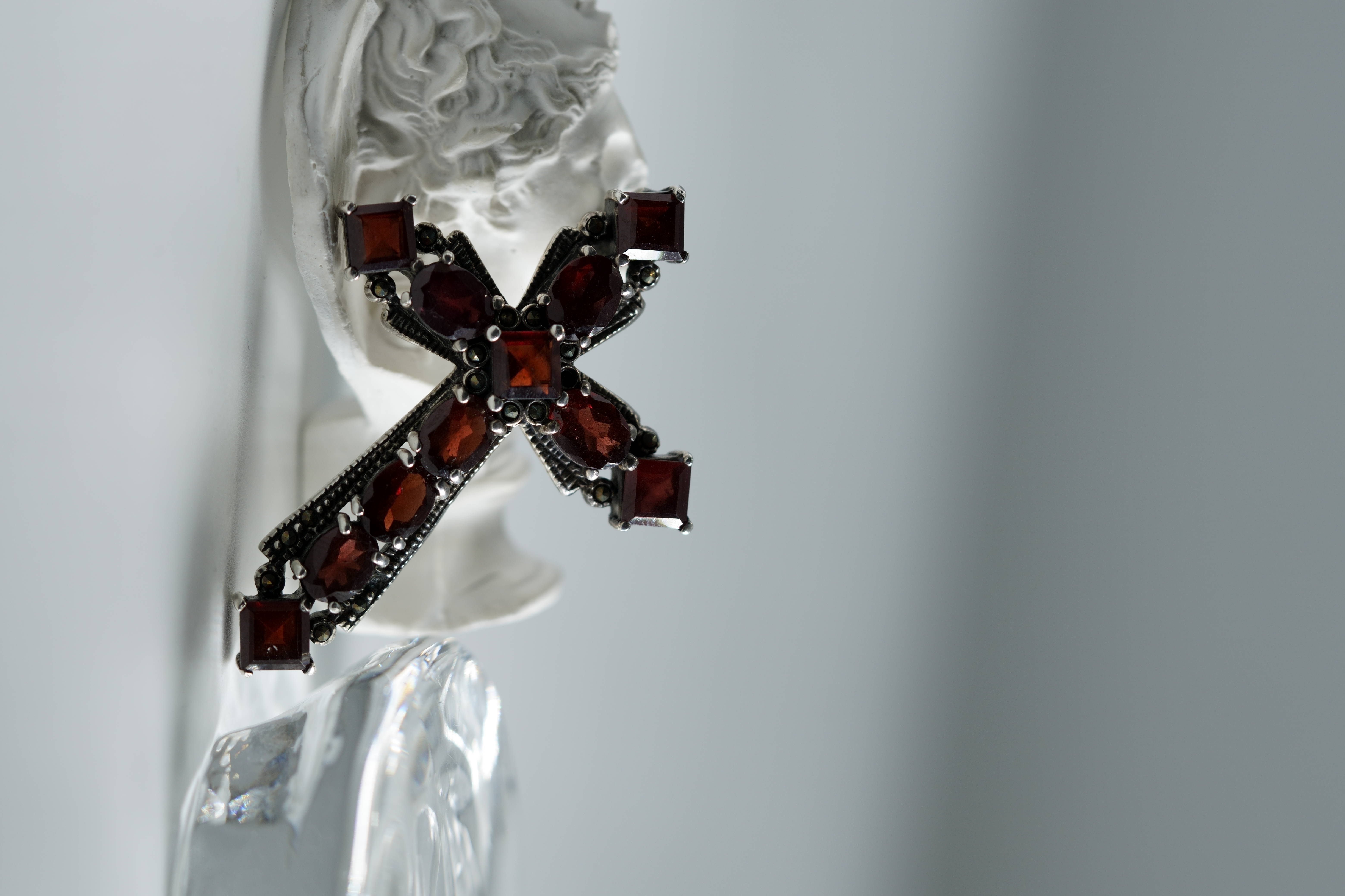 [26A84] 천연 가넷 실버 십자가 펜던트