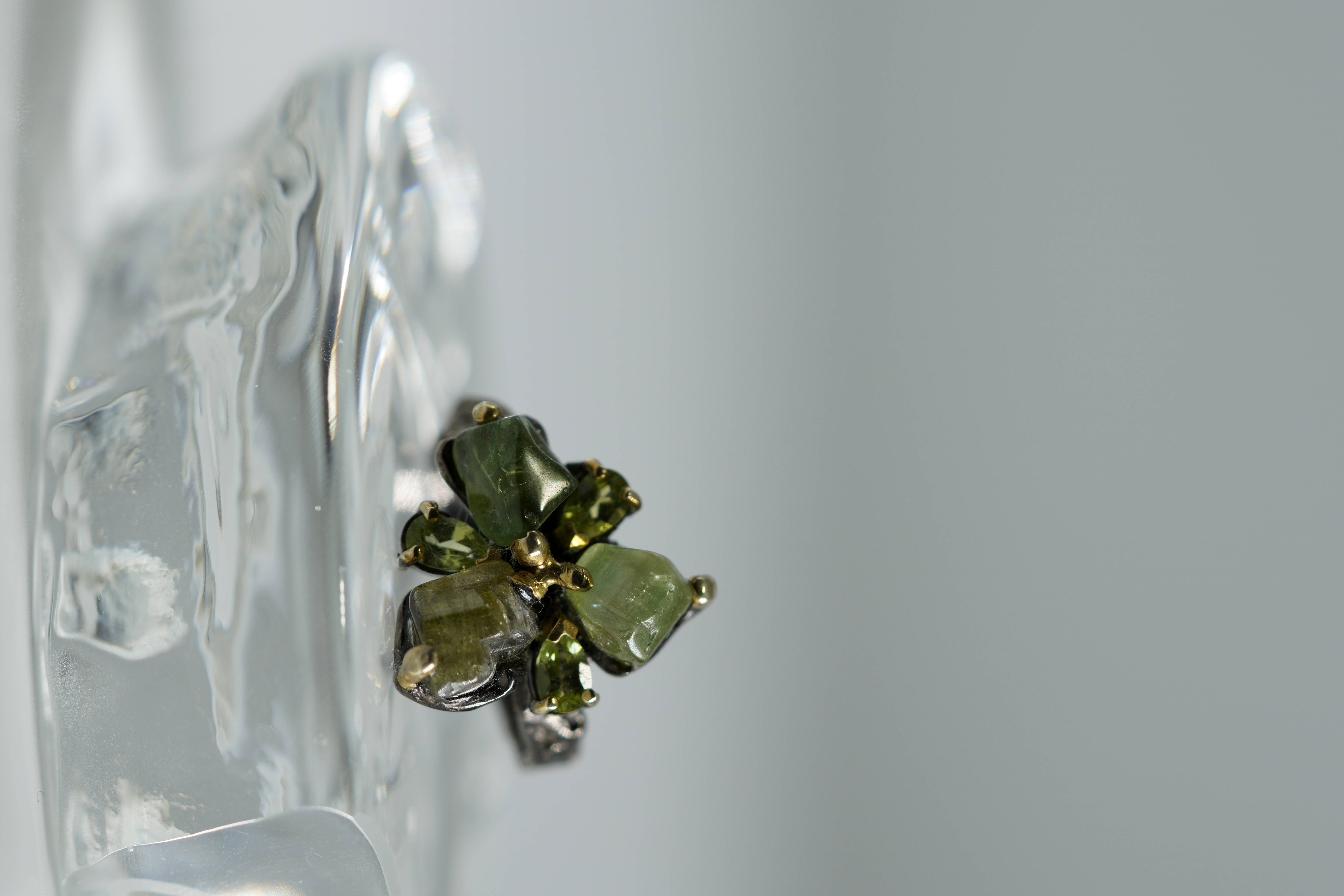 [26A36] 투어머린 페리도트 플라워 블랙도금 실버 반지