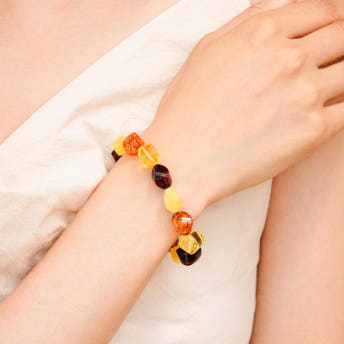 [A90][Amber 호박] 폴란드 트레디셔널 컷팅 밀화 금파 그라데이션 호박 팔찌 쁘띠 그란데 두가지 사이즈