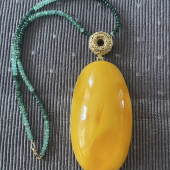 [A0][극희소][Amber 호박] 전세계 단 한점!🎉 밀화의 끝판 피스!! 다시는 생산할 수 없는 최상급 14K 천연에메랄드 47cm 목걸이 52.5 x 102mm