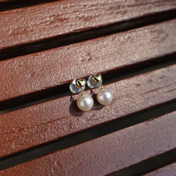 18K 옐로우 골드 4.5mm(하트사이즈) 쁘띠 하트통통 6.6mm(아코야진주사이즈) 귀걸이