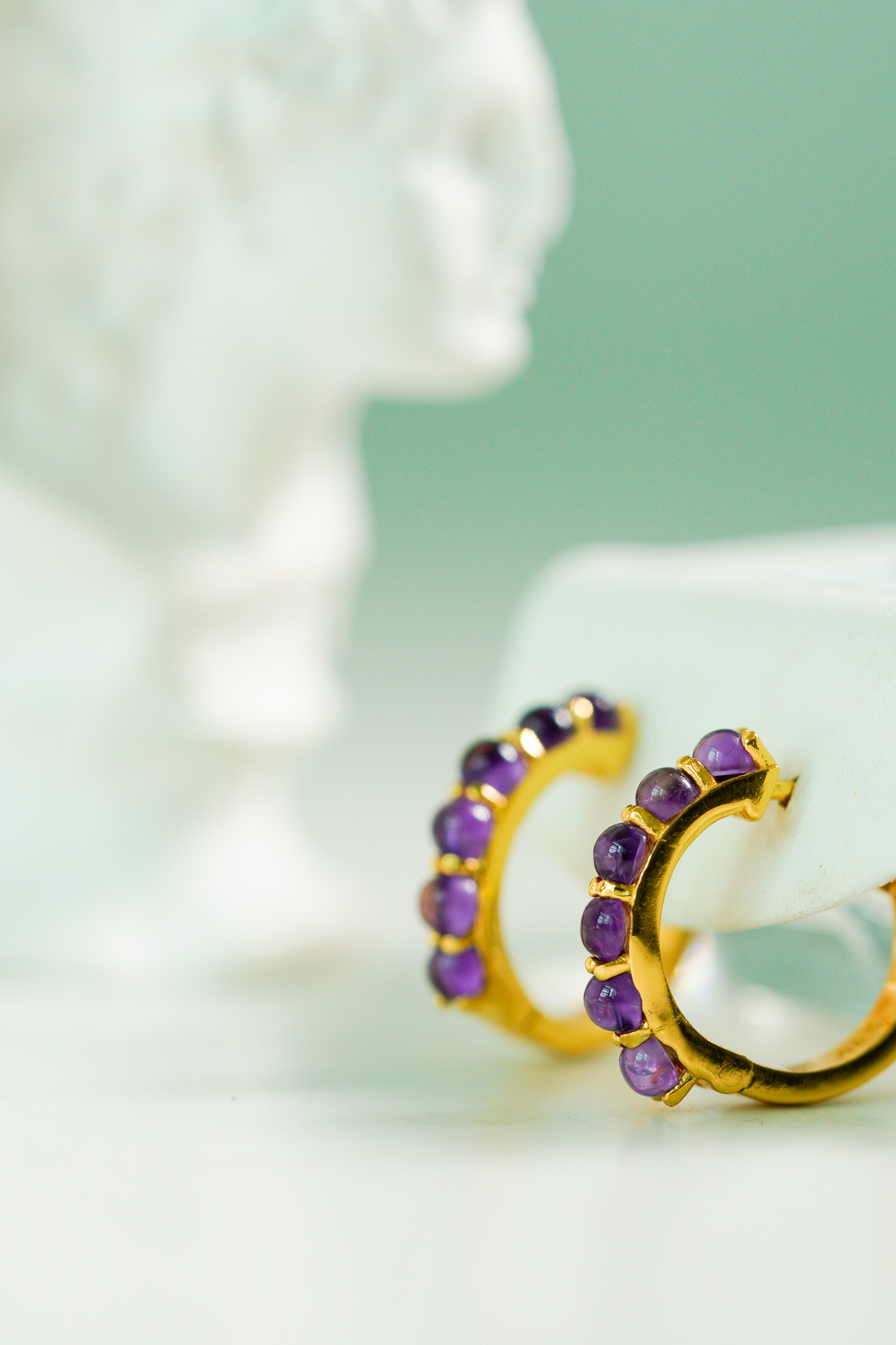 [26A7] 천연 자수정 22K 두께도금 3micron 원터치 귀걸이/ Amethyst 22K 3micron gold plating Silver Earring
