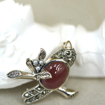 [마지막한점][451][Rokuzan] 로쿠잔 잉카로즈 좋은 소식 물고 오는 새 925 실버 펜던트 겸 브로치 2.7x3.2cm