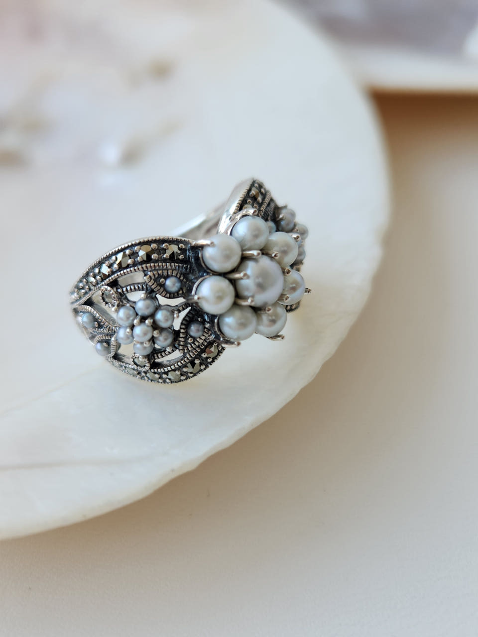 [165][Rokuzan] 로쿠잔 씨드펄 담수진주 리본 나비 925 실버 반지