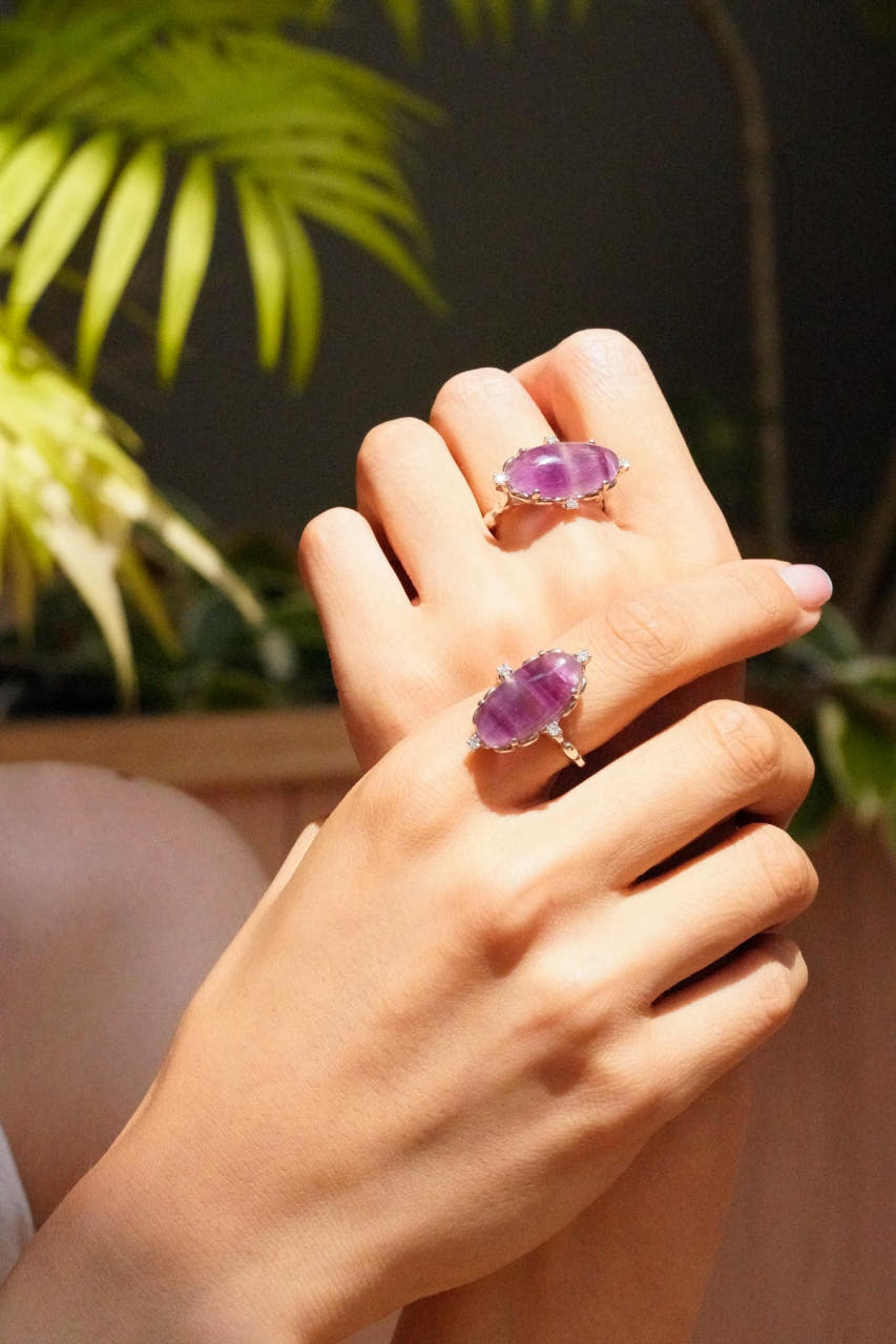 [421][D made] 최상급 랩다이아몬드 0.11ct 천연 플루라이트 원석 925 실버 반지 0.11ct 50cm 목걸이 0.23ct 귀걸이