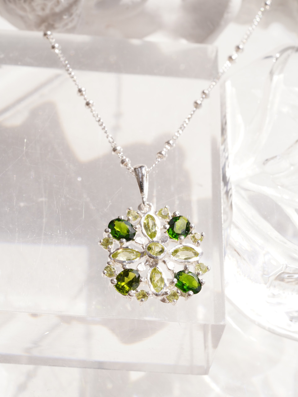 [96N][디자이너피스] 흔히 볼수 없는 크롬투휘석 원석에 상큼한 페리도트 925 실버 2볼 50cm 목걸이