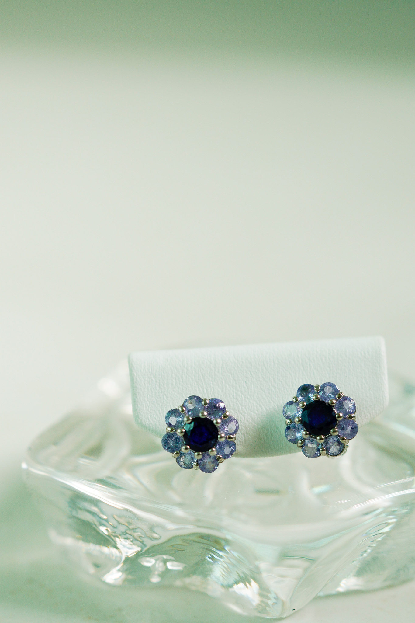 [26A92] 턴자나이트 사파이어 플로럴 실버 귀걸이
