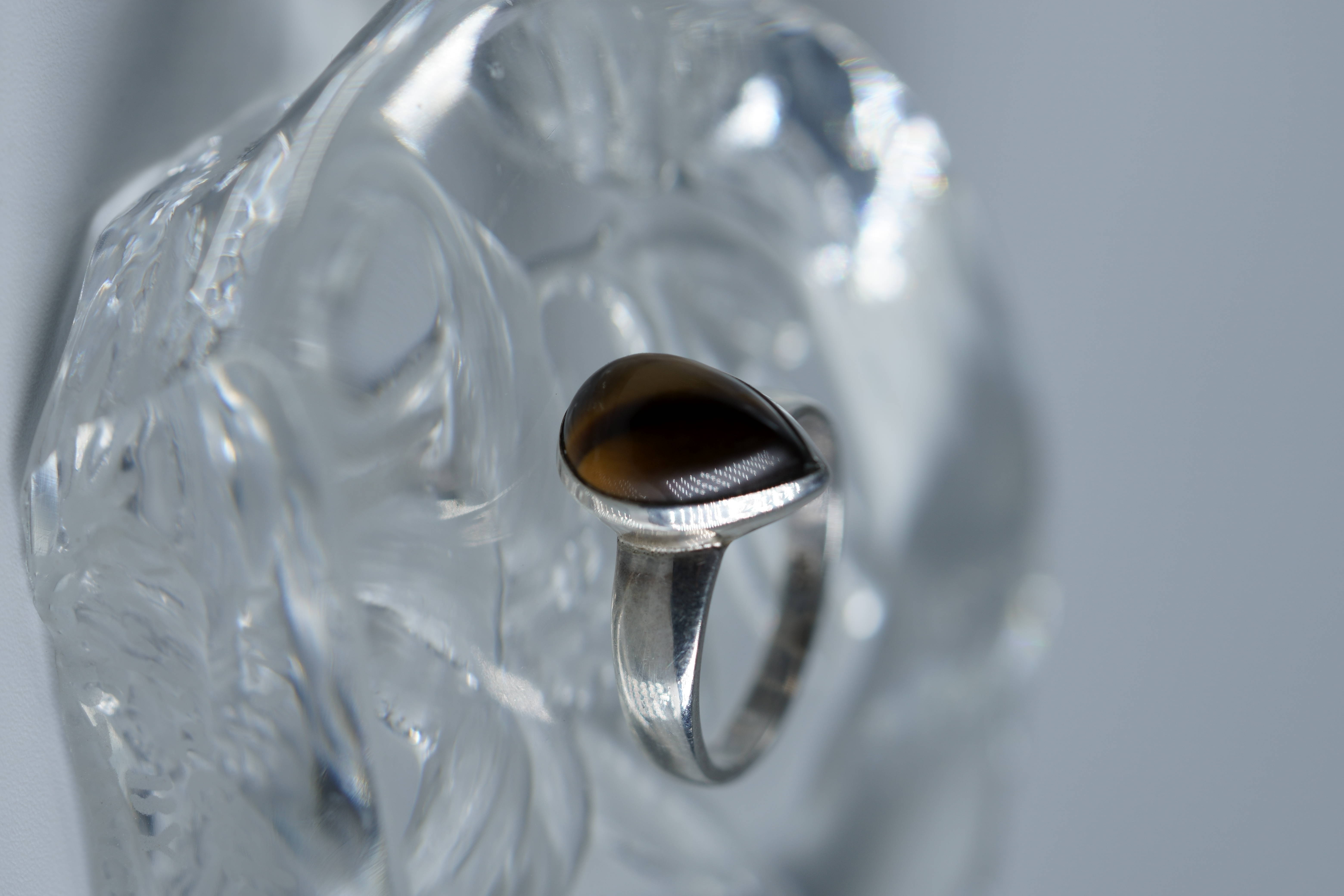 [26A38] 물방울 쉐입의 호안석AA 실버 반지 9.3x13.2mm