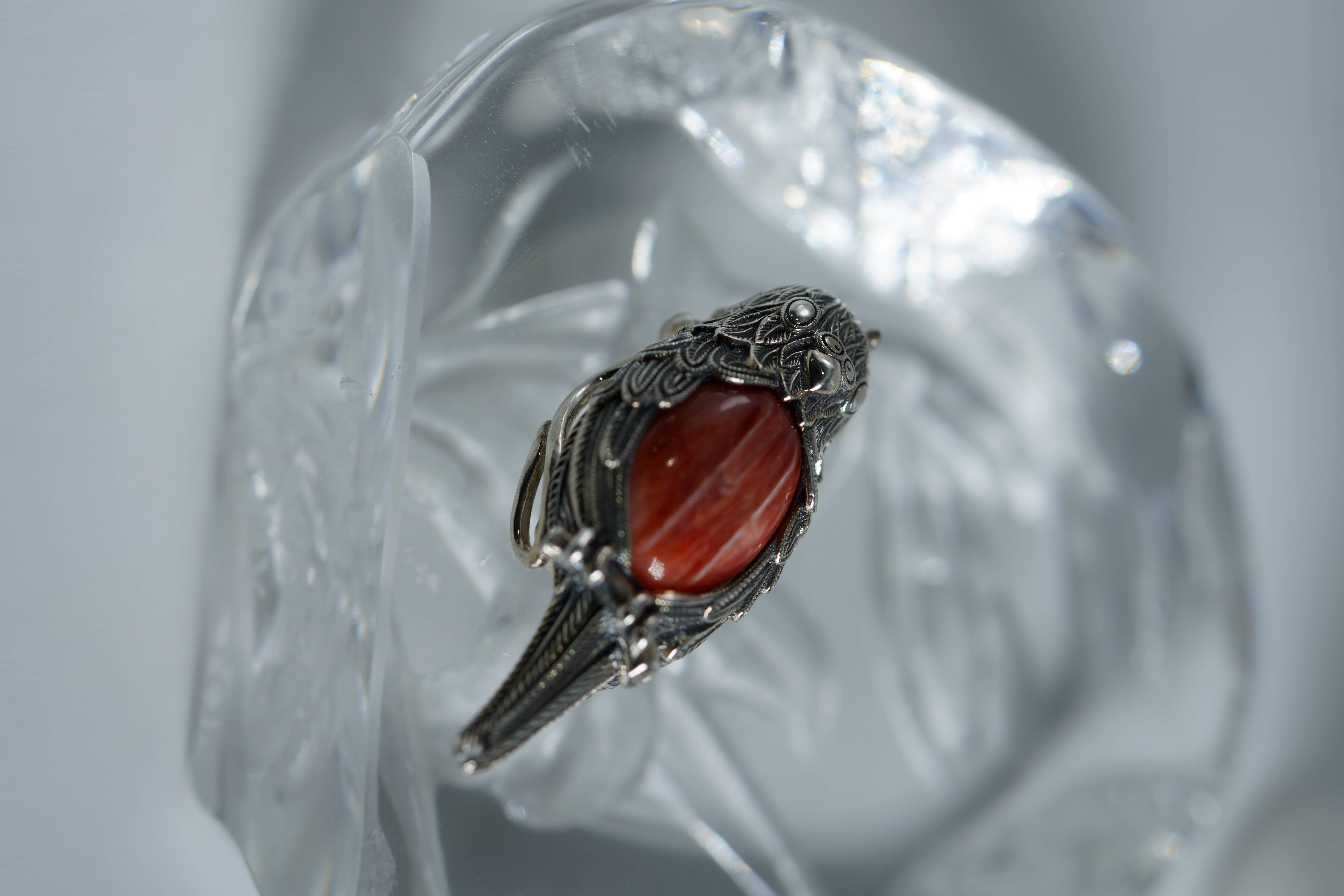 [26A91] 로쿠잔 앵무새 실버 브로치 겸 펜던트