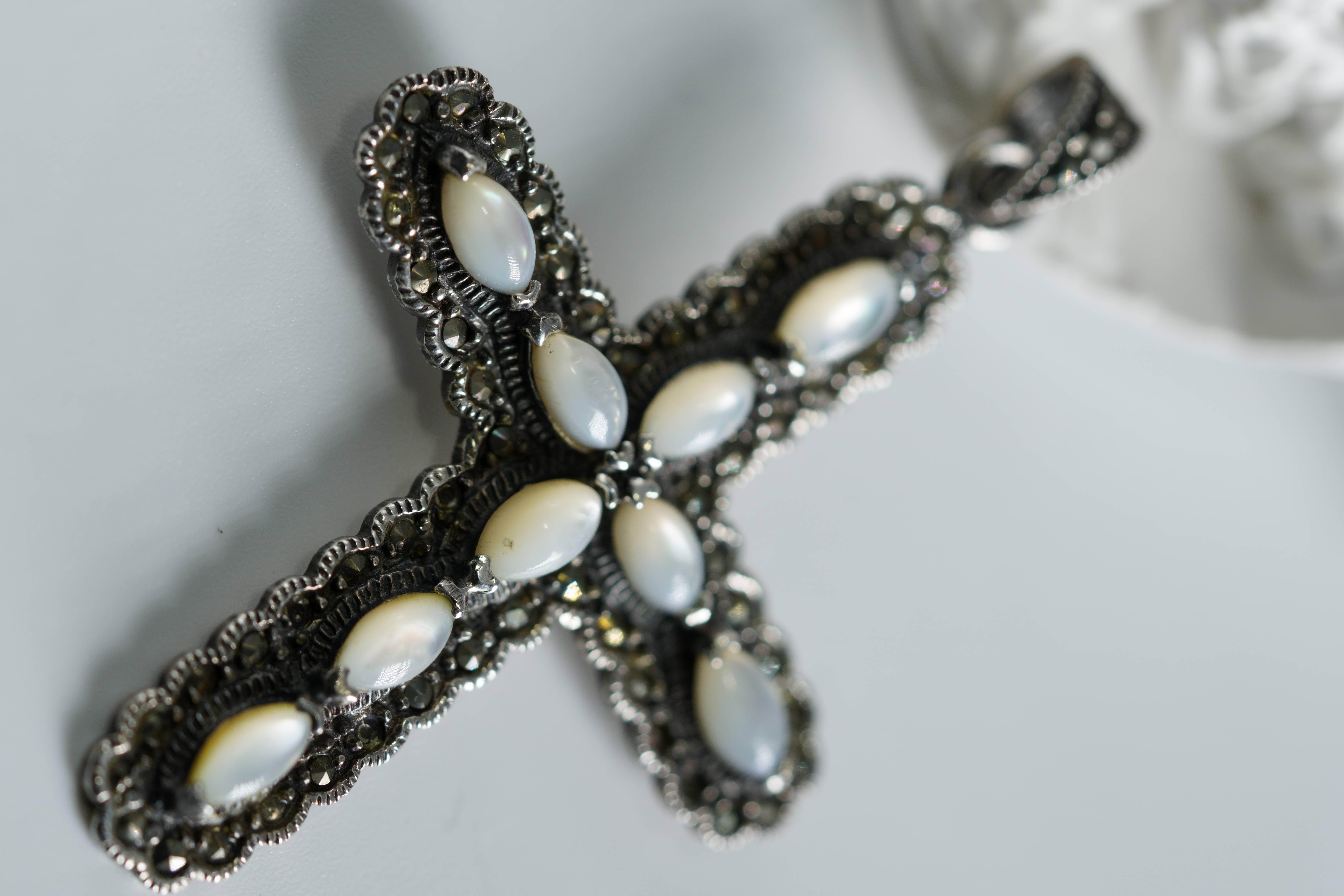 [26A83] 천연 자개 실버 십자가 펜던트