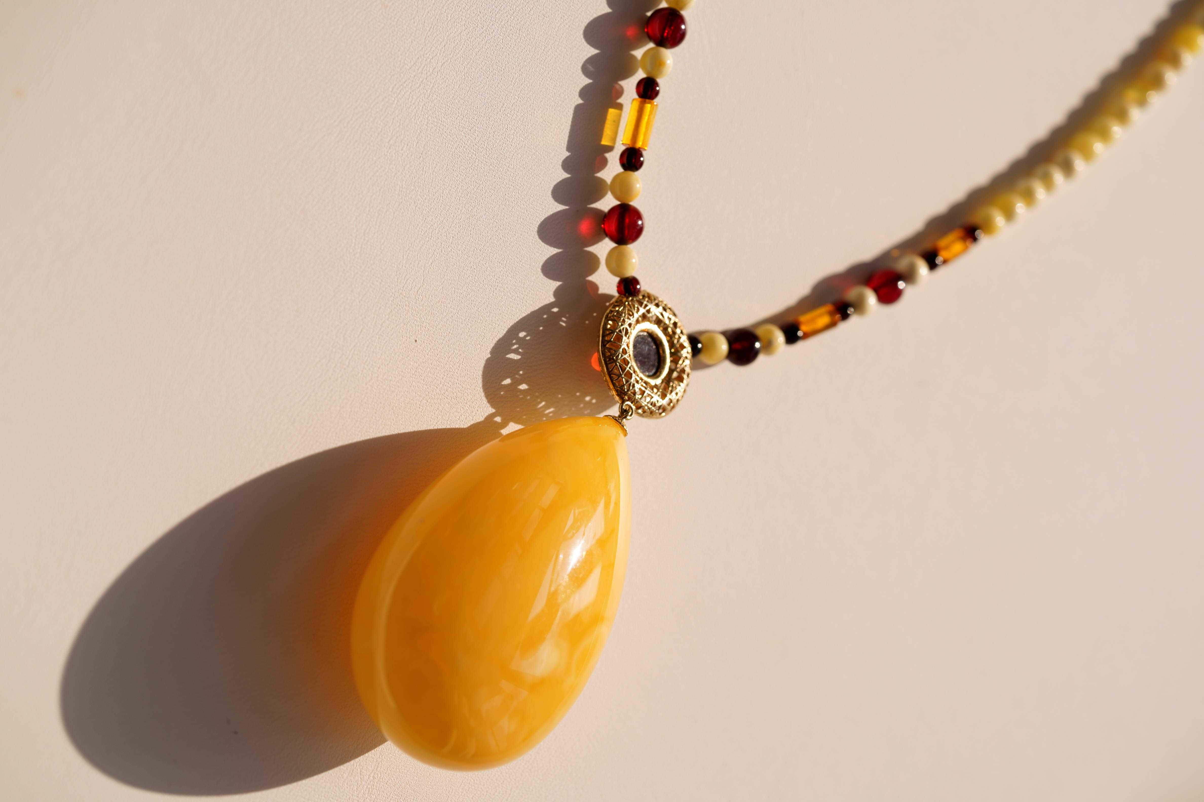 [A102][마지막한점][Rare]폴란드 고퀄 트레디셔널 컷팅 밀화 호박 목걸이_ 지름 45x60mm 길이 56cm