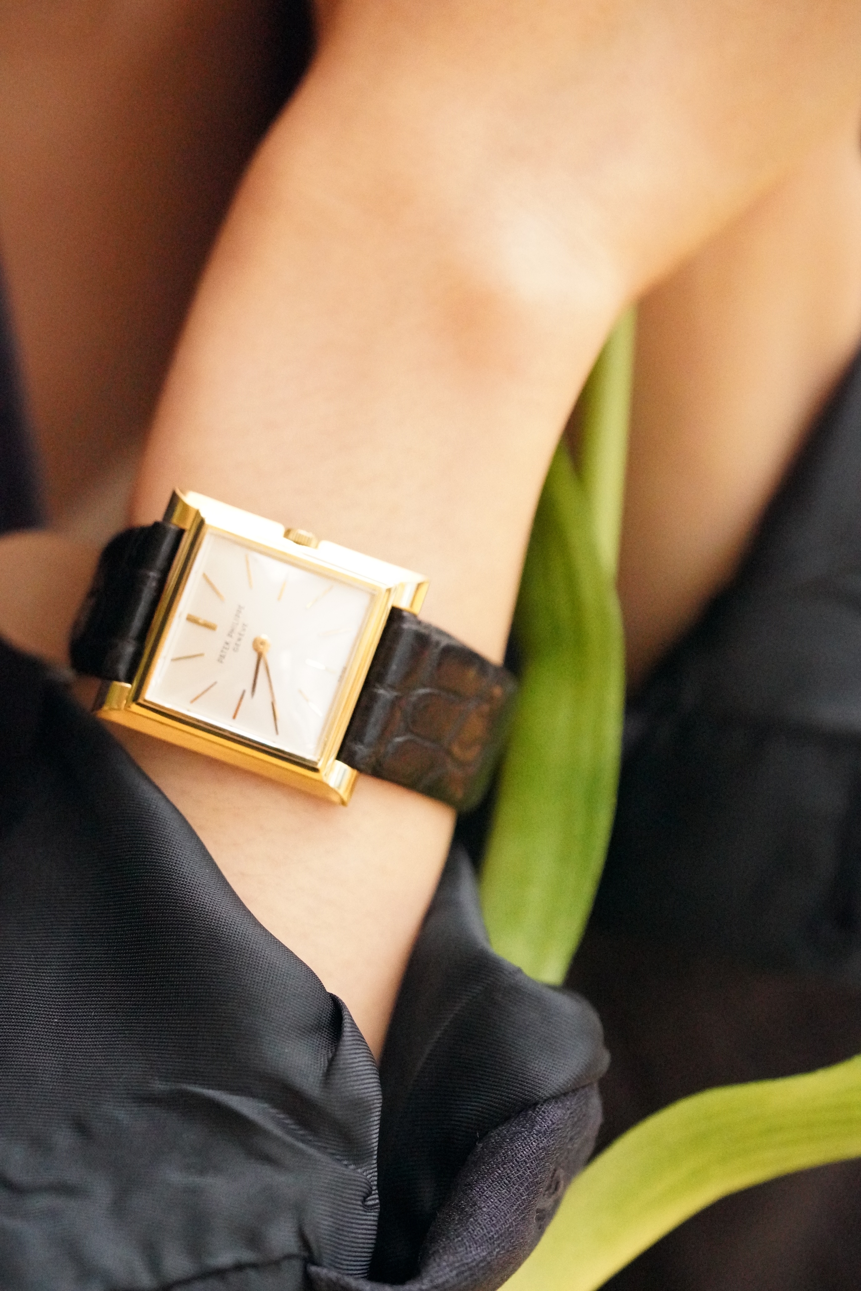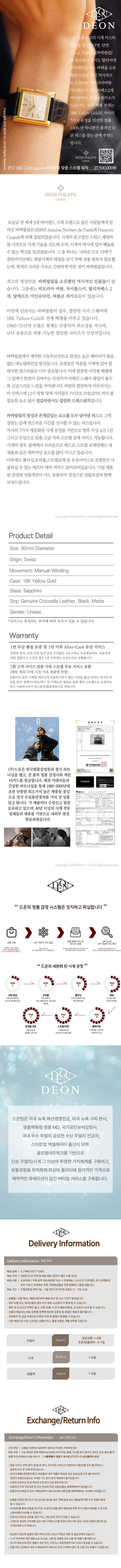 [Vintage] [P1][정품][PatekPhilipe] 파텍필립 18K 골드 베젤 맞춤 스트랩 포함 깔끔한 클래식 스퀘어의 하이엔드의 위엄