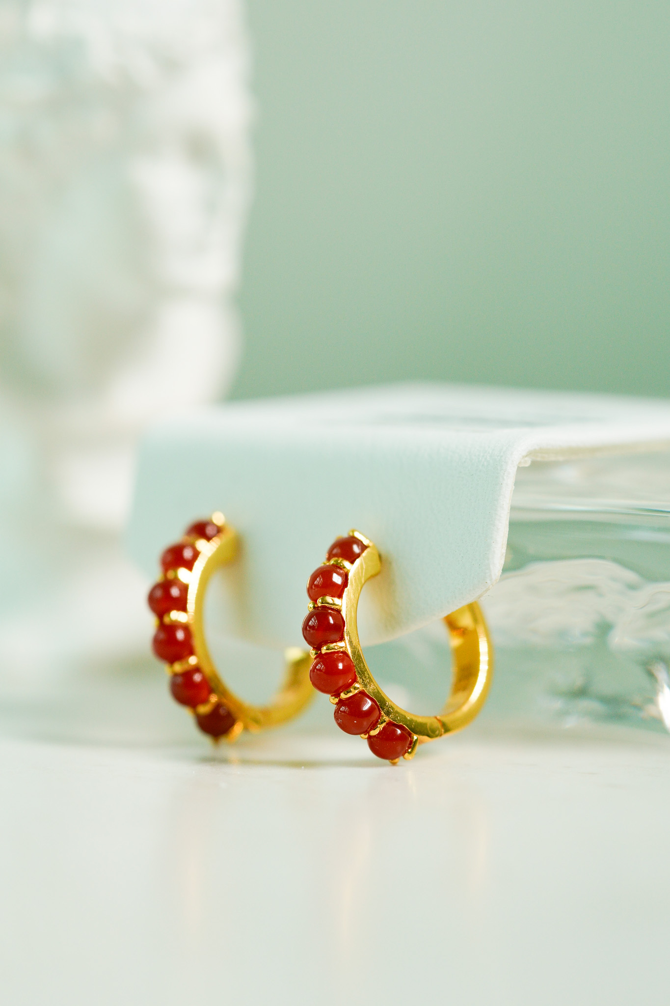 [26A4] 천연 커넬리언 22K 두께도금 3micron 원터치 귀걸이/ Carnelian 22K 3micron gold plating Silver Earring