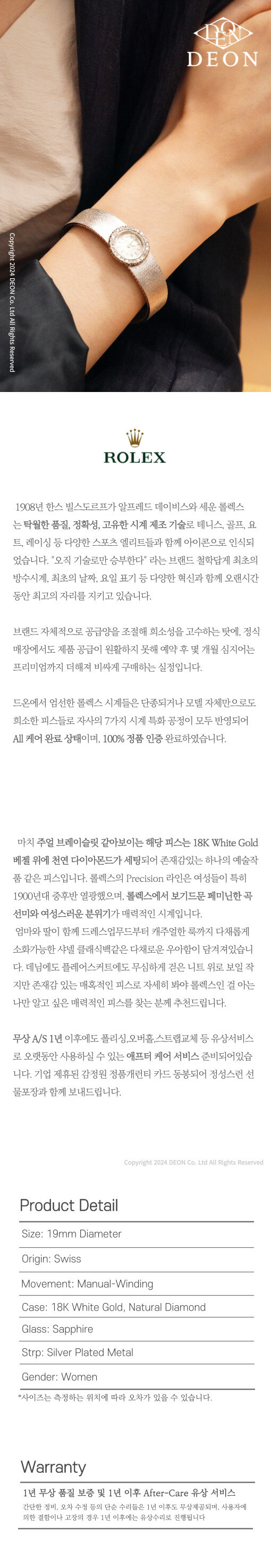 [Vintage][R1][정품][Rolex] 롤렉스 Rolex 원형 18K White Gold 천연 다이아몬드 시계 정품 감정서 포함