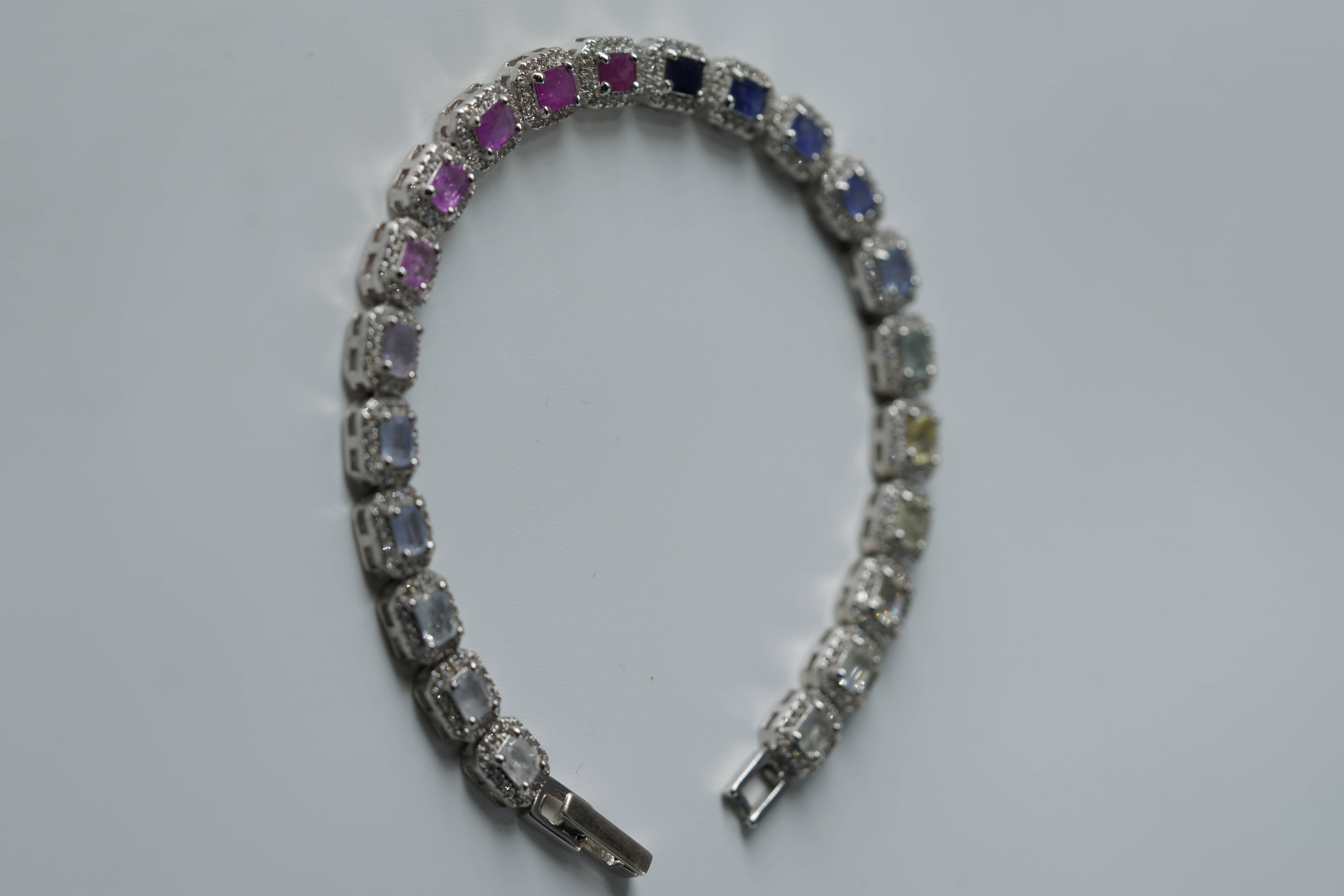 [26A107] 멀티컬러 사파이어 실버 테니스 팔찌